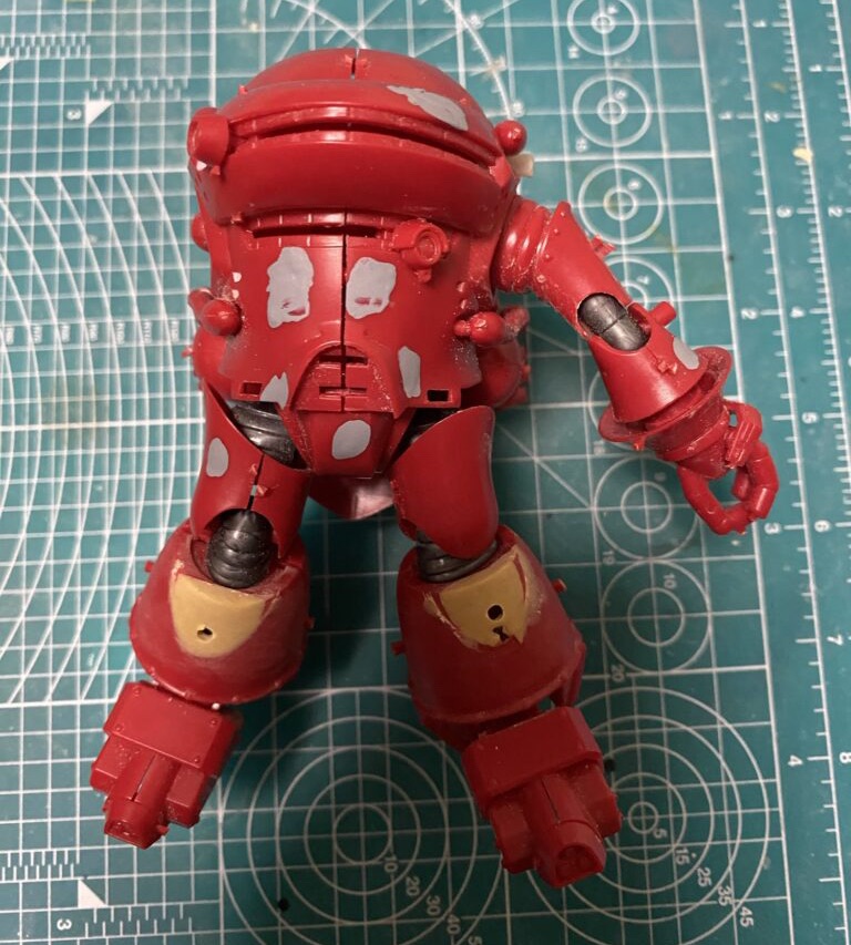 膝アーマーの形状も違うので、切り取ってパテで埋めます。で、新しく膝アーマーを作ります。